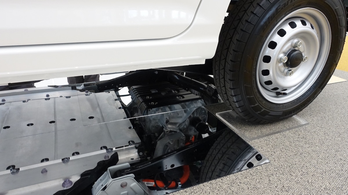 また軽貨物ゆえに、あえての制御としてパドルシフトやBモードなどの任意の回生ブレーキがないのだ。エンジニアによるとエンジン車からの乗り換え用として開発しているので、エンジン車と同じような加減速が望ましい、というのだ。