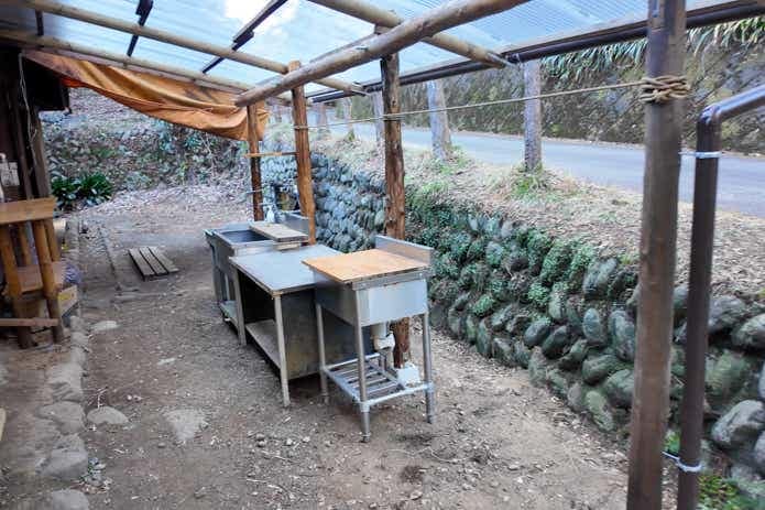 24時間トイレは清潔でウォシュレット付き(男女兼用・1カ所)、トイレの横には炊事場もあり、洗い物ができます。