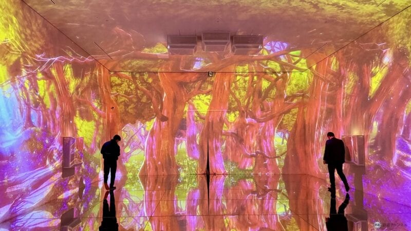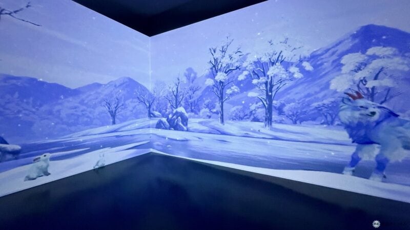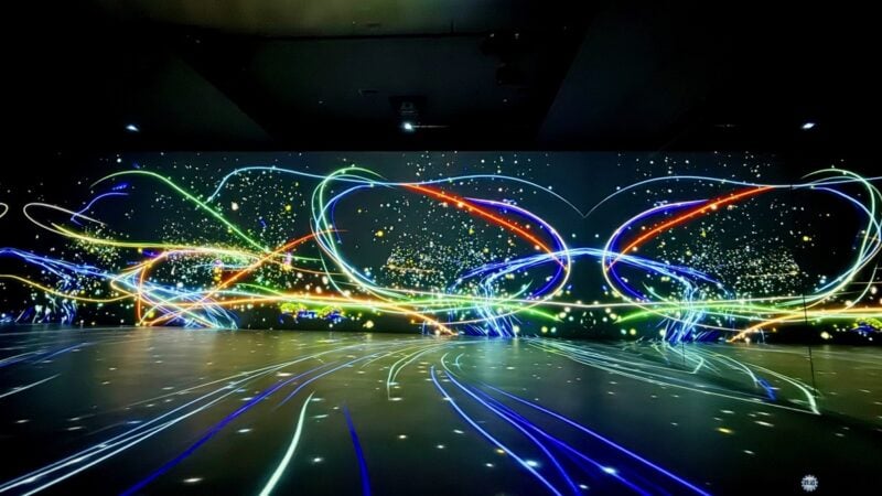 体験時は手前から眺める形式でしたが、開業後はトンネルの中に入って体験が可能。頭上から足元までが高精細な映像に包み込まれます。