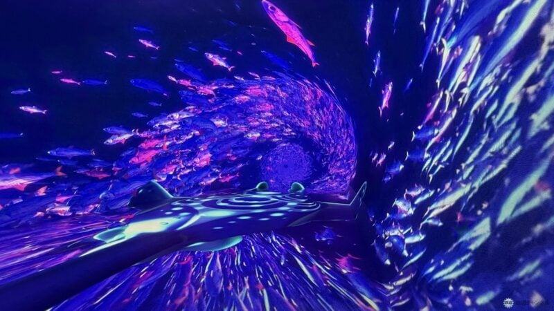 続いて「深海」を舞台としたゾーンへ。ここには「LEDイマーシブトンネル」が設置されています。幅5メートル、奥行き8メートル、高さ4メートルという常設としては日本最大級のサイズです。