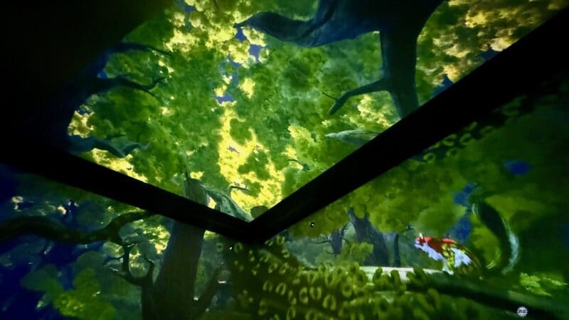 深海から打って変わって、お次は「原生林」が舞台。動き回るヤマネコの目線を追体験できます。天井まで映し出された映像を楽しみます。