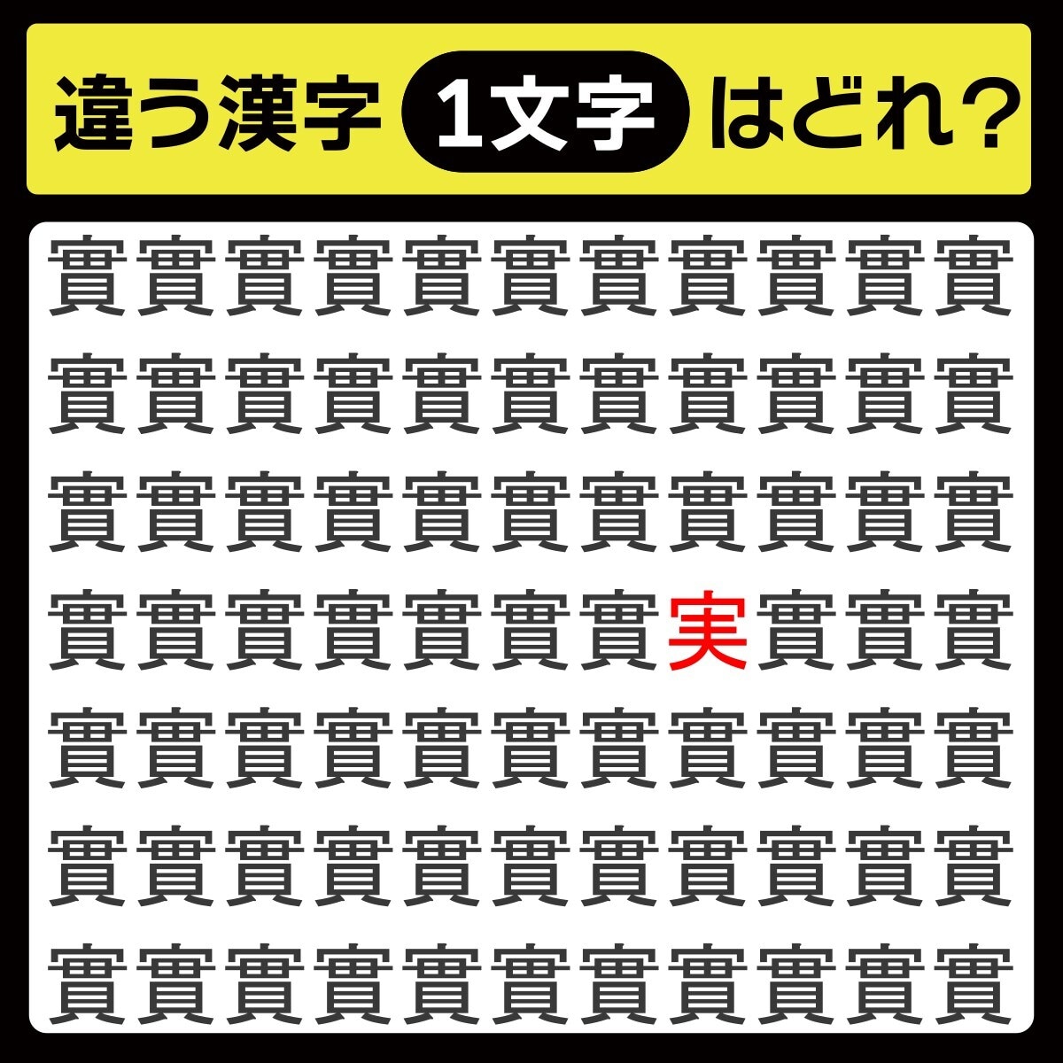 「實の中に隠れてるのは?」漢字間違い探しで脳トレしよう!【毎日脳トレ】【クイズ】
