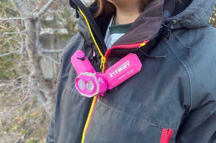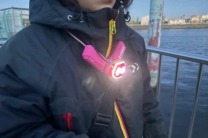 ヘッドライトのように頭部へ装着しないため、首や頭への負担が少ない点もチェストライトの大きなメリット。