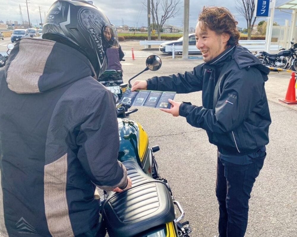 カワサキプラザ各店には「Safety Riding Adviser」が在籍しており、お客様が長く安全にモーターサイクルを楽しめるよう、日常の接点からイベントまで一貫した安全推進活動を行っています。
