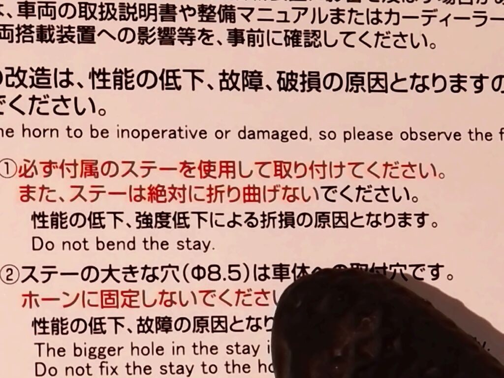移設ステーとステーを取付けたホーンを装着位置を決めながらボルトで止めます。