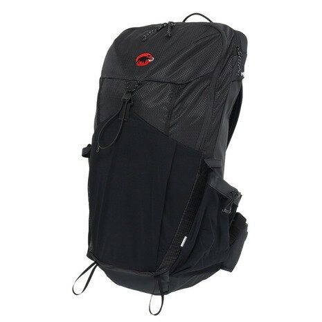 フロントメッシュポケットは行動中でも荷物を取り出しやすく、実用性も十分。レインカバーも付属し、日帰りハイクからタフなツアーまで幅広く活躍します。