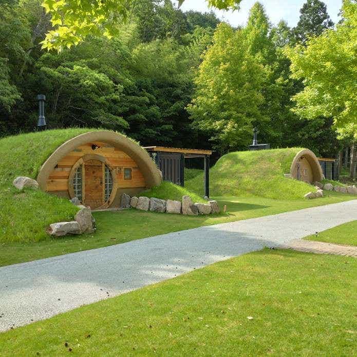 芝や砂利などのキャンプサイトと、ドッグラン併設サイト、キャビンやロッジ、芝に包まれた土のトンネルに泊まる「AKAKURA」など、サイトの種類も豊富。同じ敷地内にホテルが併設され、大浴場も利用できます。