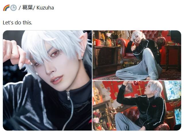 鮎川は3月15日、自身のX公式アカウントで「⚠ コスプレ / Cosplay ⚠ 🌈🕒️ / 葛葉/ Kuzuha Let’s do this.」と投稿し、葛葉のコスプレ写真3枚を公開しました。
