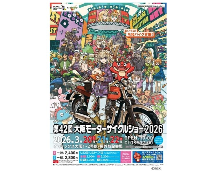 一般社団法人 日本二輪車普及安全協会は、2026年3月20日~22日の3日間、インテックス大阪で関西最大級のバイクイベント「第42回大阪モーターサイクルショー2026」を開催する。