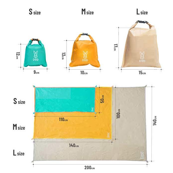 とってもコンパクトなウサンポレジャーシートは3サイズ展開。実際にどれぐらいのサイズがイメージしにくいかもしれないので、使用例を写真で見ていきましょう。