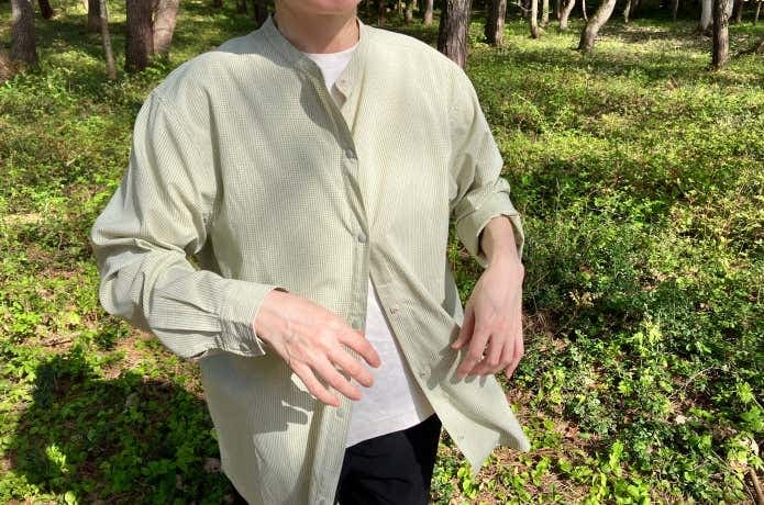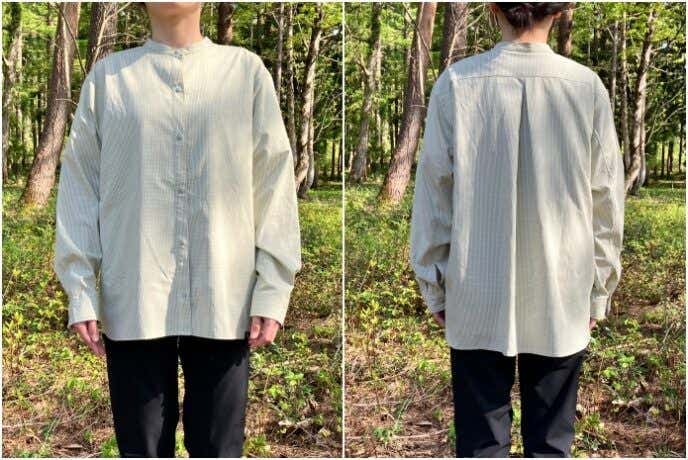 バンドカラー&絶妙なシルエットだから、山にも街にも馴染む
