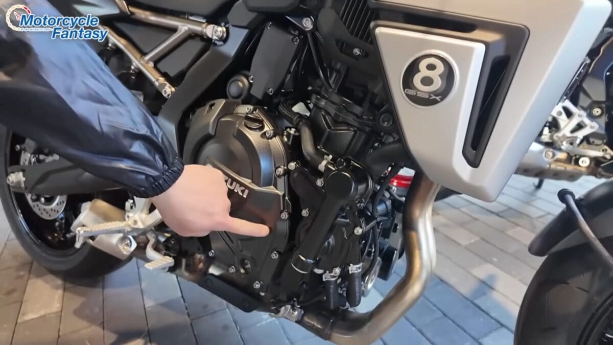 GSX-8T/GSX-8TTは、800ccの並列2気筒エンジンを搭載。270度クランクを採用することで、Vツインのような鼓動感とトラクション感を生み出しているのが特徴だ。さらにスズキ独自の「クロスバランサー」を採用し振動を抑制を備え、振動を抑えた滑らかな回転フィールを実現。レスポンスは穏やかで扱いやすく、街乗りからツーリングまで幅広く楽しめる特性となっている。排気量のわりにシルキーな回転感も魅力だ。