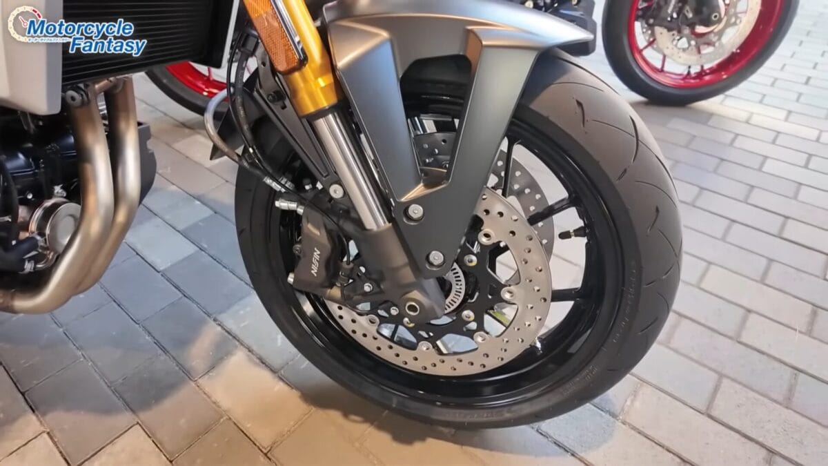 フロントには310mmの大径ディスクブレーキを装備し、ラジアルマウントキャリパーを組み合わせることで高い制動力とコントロール性を確保。足まわりの構成は現代的なスポーツバイクのトレンドを押さえた仕様で、安定したブレーキングと安心感のあるフィーリングが期待できる。8TTではフロントフォークのアウターチューブがブラック仕様となり、ワイルドな印象を演出している。