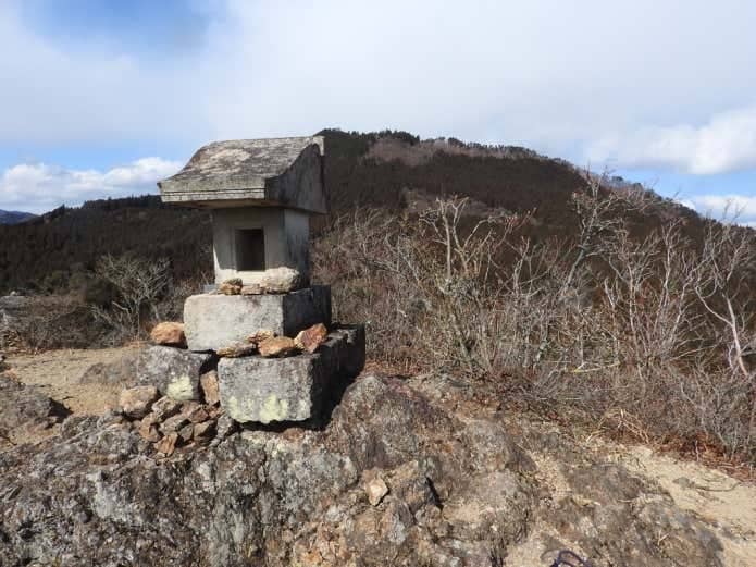 石祠が設置されている鍬柄岳山頂からは大展望が広がります。これから向かう大桁山はもちろん、次に紹介する四ッ又山・鹿岳から荒船山まで西上州の山並を堪能しましょう。