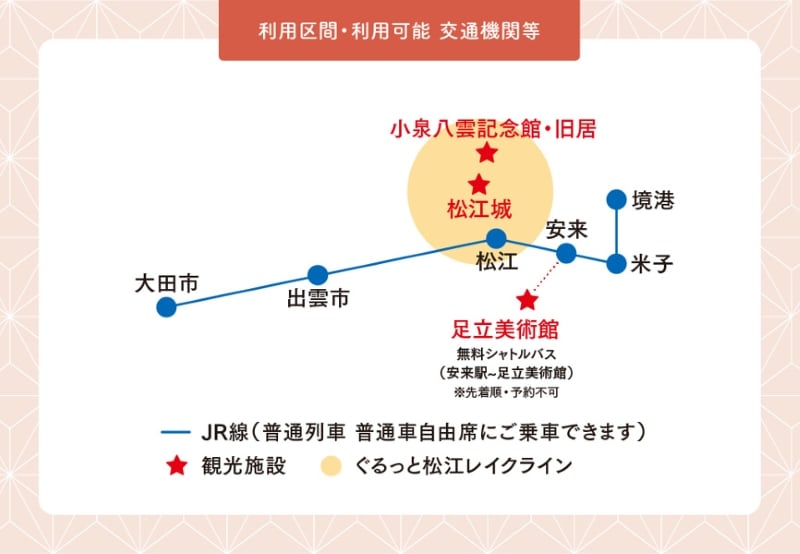 ・松江・出雲のんびりパス(2日間有効):大人5,000円、こども1,800円