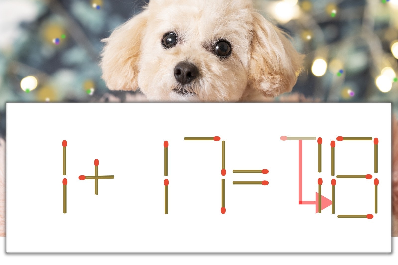 「7」を別の数字に変化させると答えが導き出せます。「7」のマッチ棒を1本移動して、「9」を「8」にしてみましょう。すると、「1+17=18」が成立します。