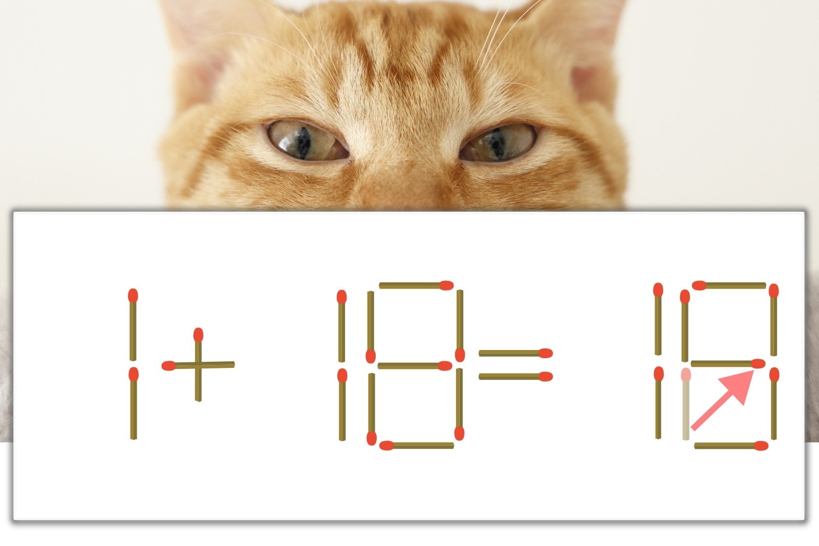 「0」を別の数字に変化させると答えが導き出せます。「0」のマッチ棒を1本移動して、「0」を「9」にしてみましょう。すると、「1+18=19」が成立します。