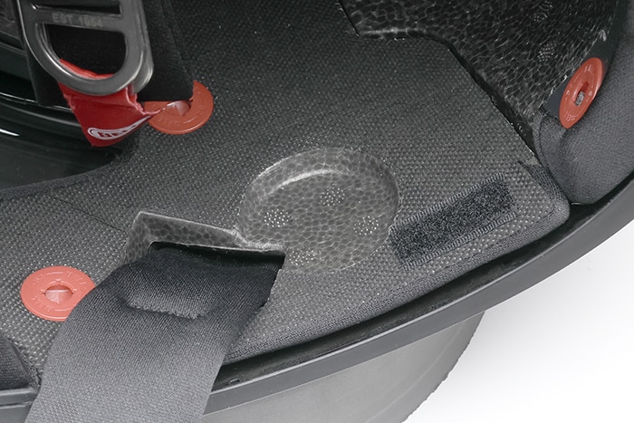 ライナー内にスピーカーを収める空間を備え、インカムを装着しても違和感が少なく、快適なかぶり心地を損ないません。