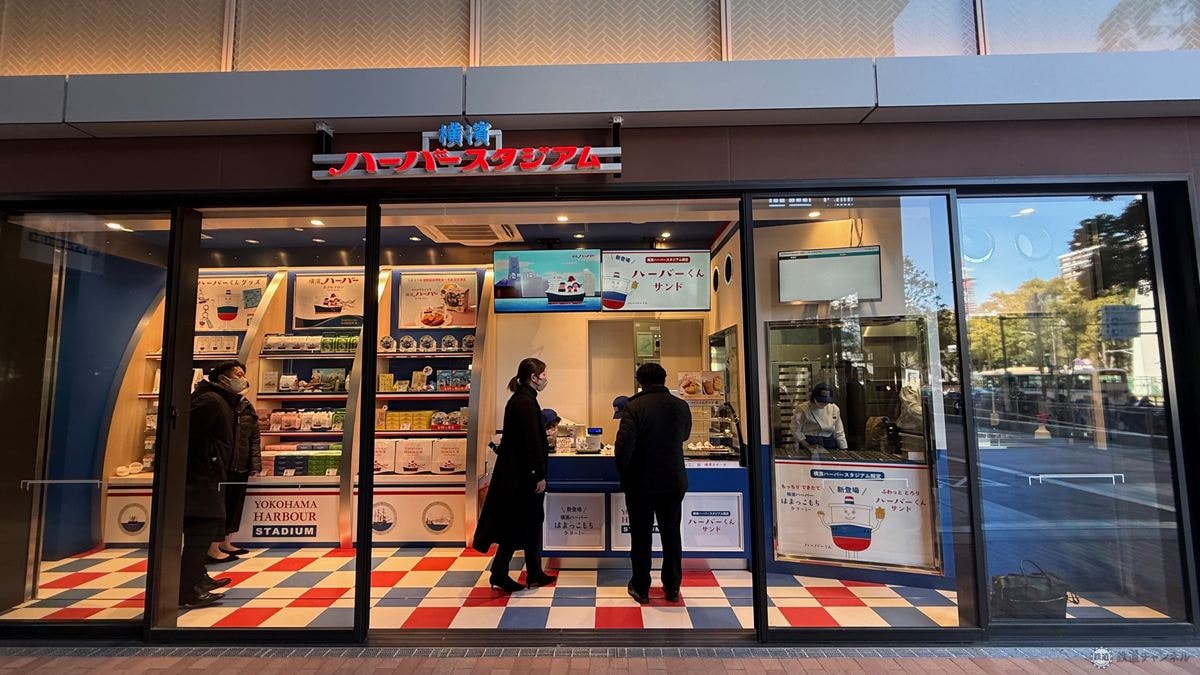 横濱ハーバーの公式キャラクター「ハーバーくん」をモチーフにした「ハーバーくんサンド」や「横濱ハーバーはまっこもち クリーミー」はどちらもできたて。ハーバーくんグッズも販売しています。