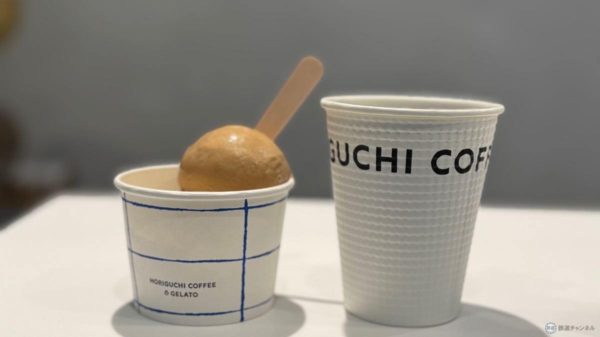 コーヒーショップ巡りが趣味の筆者がどうしても行きたかった1軒がこちら「HORIGUCHI COFFEE & GELATO」。本店は世田谷で、東京都外では初出店。コーヒーとジェラートのペアリングを楽しめる新業態です。横浜港近くに焙煎拠点「横浜ロースタリー」を構えている縁で出店が決まったそうです。