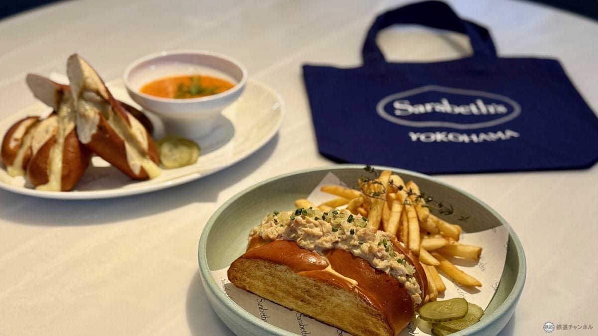 サラベスBASEGATE横浜関内店限定メニューとして、シーフードをメインにした「クラブミートロールサンド」と「プレッツェルチーズサンド」が登場。プレッツェルチーズサンドにはベルベッティークリームトマトスープがセットに! 個人的にこのスープのファンでして、優しい酸味となめらかな舌触りを是非体験してほしい! と思います。
