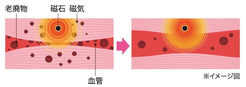 同社は、対処法の1つとして「磁気」を挙げ、体内成分に働きかけて筋肉内の血行を良くし、こりの悪循環を断ち切ることが期待できるとしている。