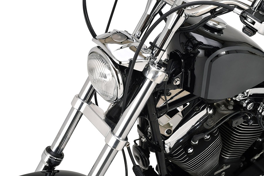 ニューフリスコスタイルの象徴とも言えるトリプルツリーは、ナローフォーク化に特化して専用設計されています。この設計は、都市部でのすり抜けや軽快なハンドリングを可能にするために最適化されており、「気軽に乗れるハーレー」としての価値を生み出しています。さらに、タイトなハンドルと長いライザーの組み合わせにより、フリスコチョッパースタイル特有のアーバンな雰囲気と実用性のバランスを高めています。また、19インチのフロントホイールを採用することで、スポーティな安定感と軽快な操作性を提供しています。