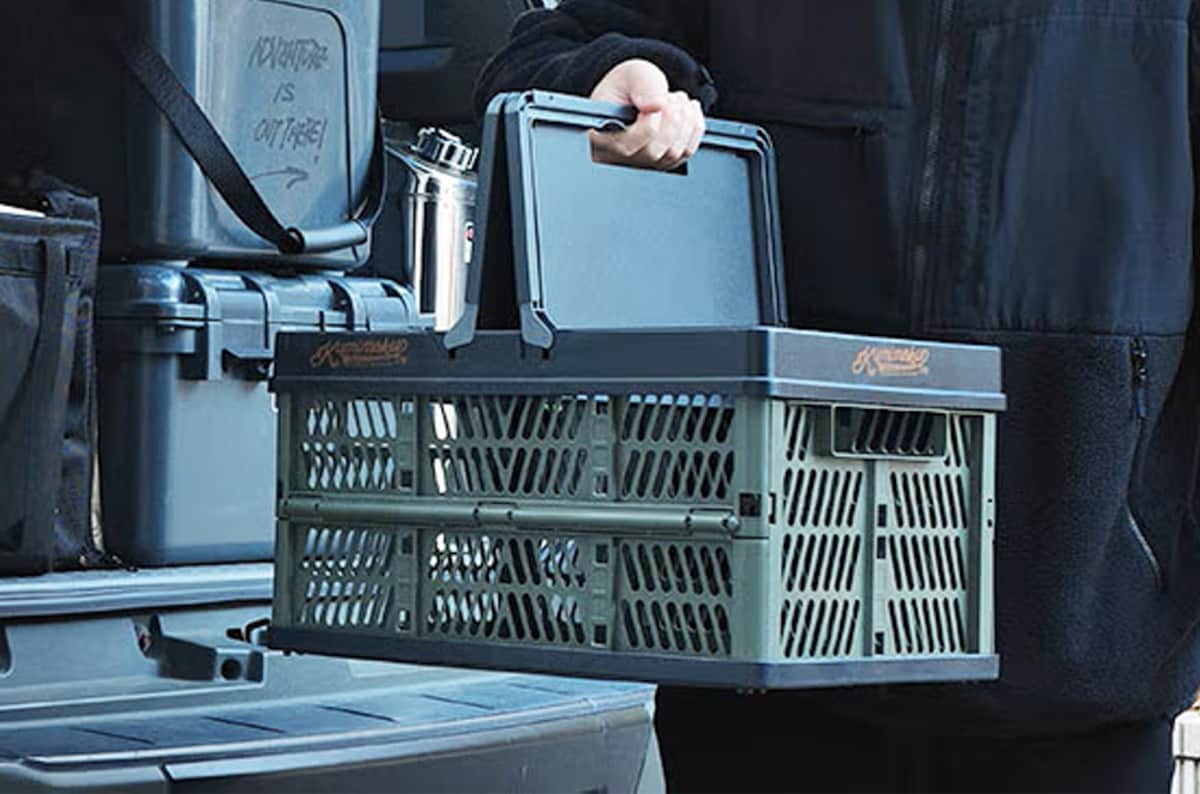 キャンプ場でも使っているのをよく見かける、このタイプの折りたたみコンテナ。「あ、自分も使ってる!」という方も多いのではないでしょうか? そんな人にこそ知ってほしいのがコレ。