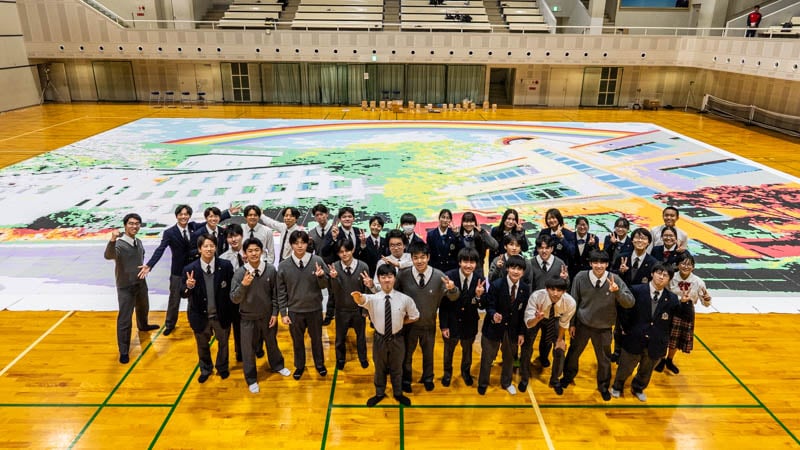 大阪から世界最大の紙ふぶきモザイクアート! 関西創価学園が97万6800枚のギネス世界記録