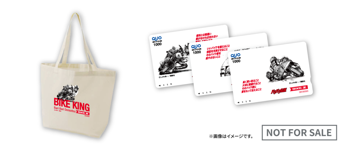 バイク王会員(無料)に登録いただいた方であればどなたでもご参加いただけ、参加賞として、コラボデザインのトートバッグをお渡しします。
