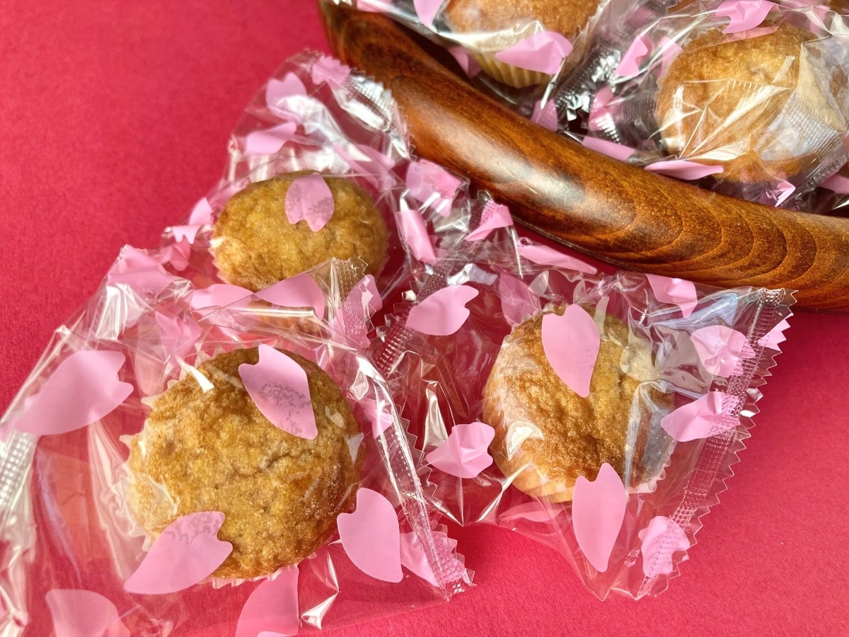 大容量でみんなでワイワイしたいときにもぴったり!桜の香りと桜葉の塩味がきいたひとくちサイズのマドレーヌ。