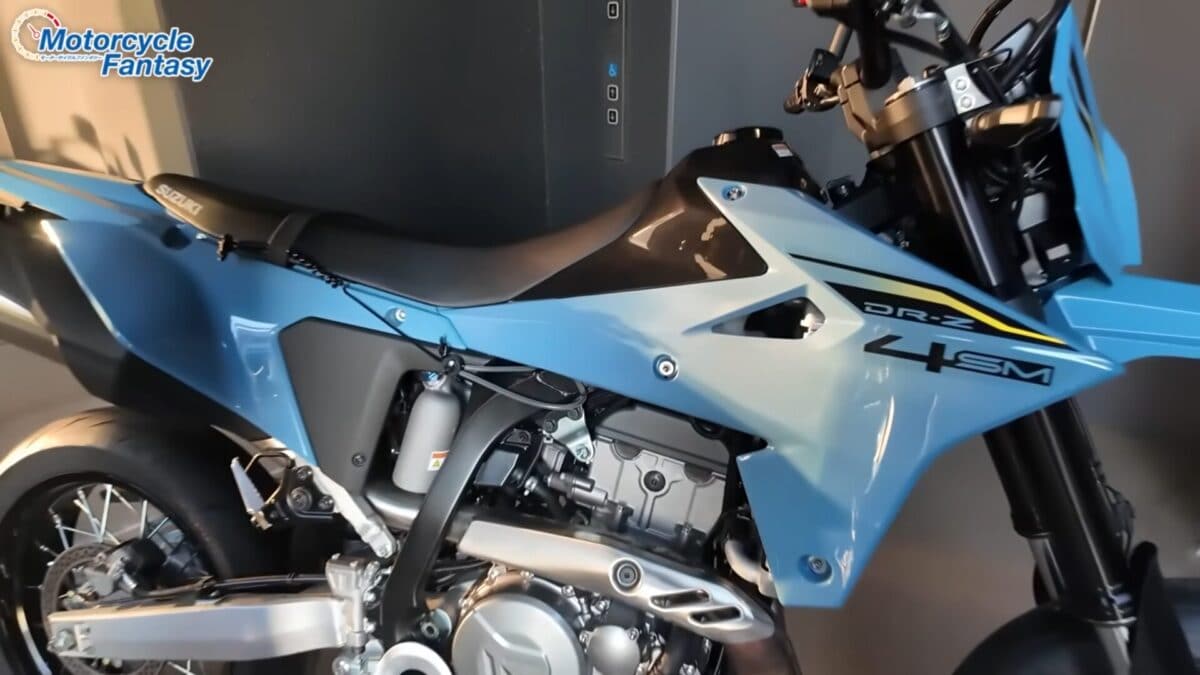 DR-Z4SMは、オフロードモデルの血統を受け継ぐ軽量スーパーモタード。17インチホイールとスリムな車体により、街中のストップ&ゴーやワインディングでの切り返しも軽快で、ライダーの操作に素直に反応するハンドリングが魅力だ。単気筒エンジンはインジェクション化され電子制御スロットルを採用し、扱いやすさと鋭いレスポンスを両立。さらにトラクションコントロールやドライブモードなど現代的な電子装備も搭載し、シンプルな外観ながら高性能な走りを実現している。