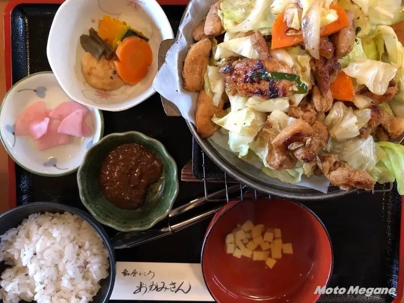 鶏ちゃんは、郡上市のある奥美濃地方や、下呂市のある南飛騨地方の郷土料理。鶏肉を味噌や醤油ベースのタレなどに漬け込んでから、キャベツやタマネギなどの野菜と一緒に炒めて食べる料理。物産館では10種類以上の鶏ちゃん商品が並ぶほか、喫茶明宝、和食処おかみさんで、鶏ちゃん定食を提供する。