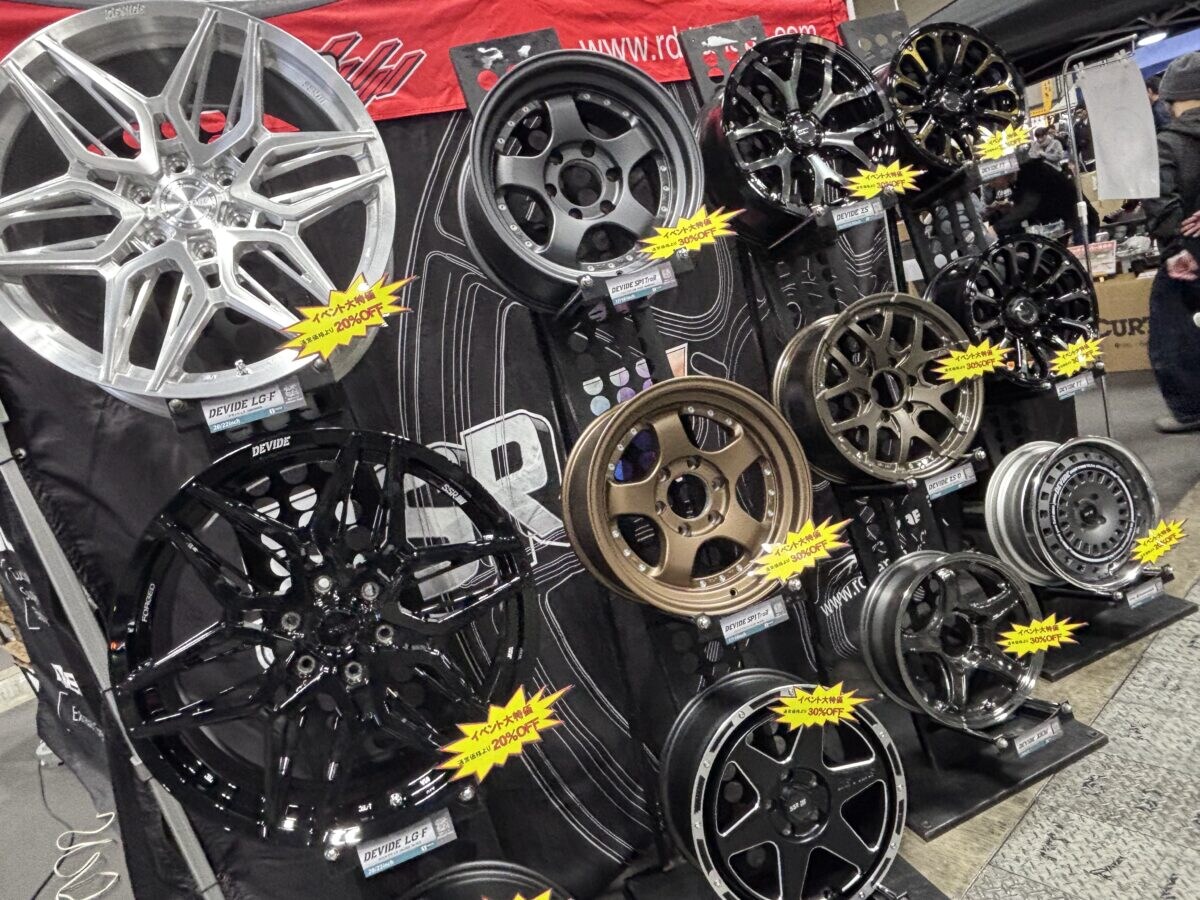 出展企業は、パーツメーカーやショップなど過去最多となる70社以上。各ブースでは、タイヤやホイール、サスペンションといったカスタムパーツが「フェス限定価格」で販売された。