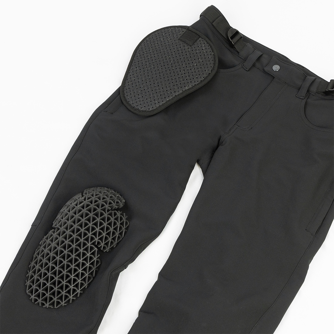 関節の動きにストレスなく追従するデルタ構造の集合体で設計されたCEレベル2認証ニープロテクターは、柔軟性だけでなく通気性にも優れ、メッシュパンツとの相性は抜群。