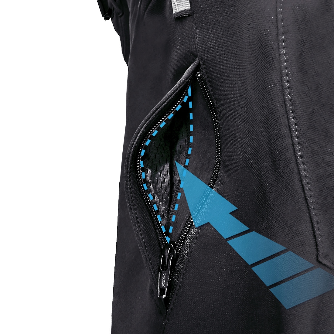 膝・腰にCEレベル2認証プロテクターを標準装備し、プロテクション性能を高めたメッシュパンツ。