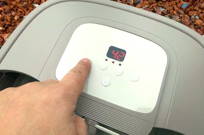 公式サイトでは「19℃の水4Lが40℃に達するのに約12分」とありましたが、屋外で寒いうえに水道水の温度も低く、湯温も最高の43℃に設定したためか、思ったより時間がかかります。