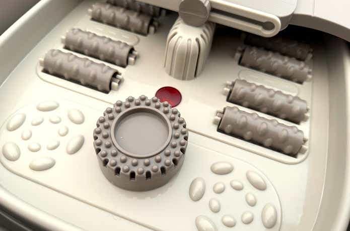 そして内側を見ると、何やら複雑な構造なのですが、これ、マッサージ用の「足裏ローラー」が8個、さらに「バブル・アロマポケット」まで装備しているんです。