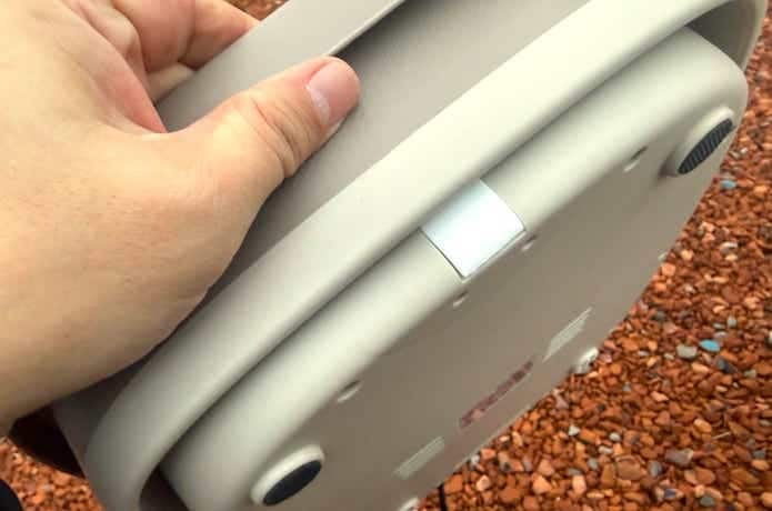 ご覧のようにハンドルもついており、あまり力のない人でも、キャンプ場内での運搬程度なら、そこまで不便を感じることはないかと思います。