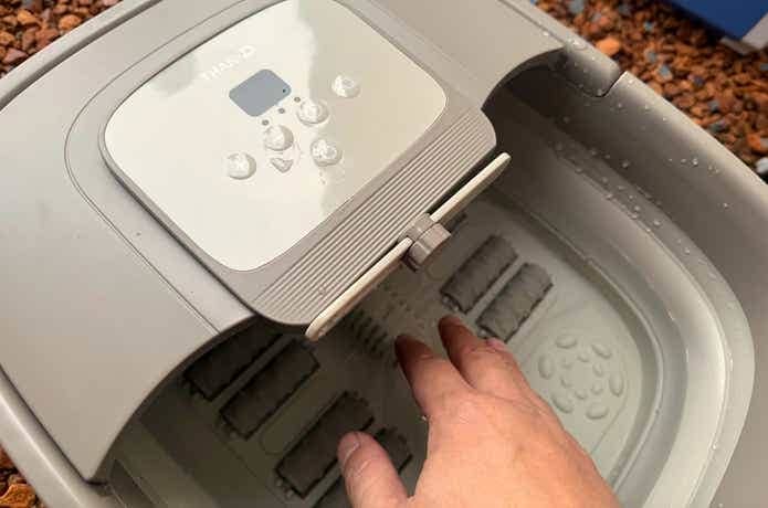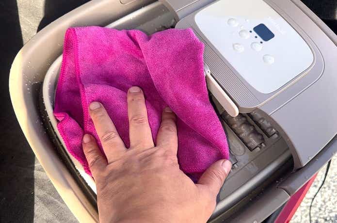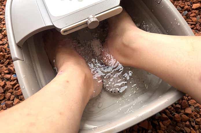 まず、サイズはW410×D340×H200mmと、大きすぎず小さすぎず、「足湯」をするのに過不足のない感じです。