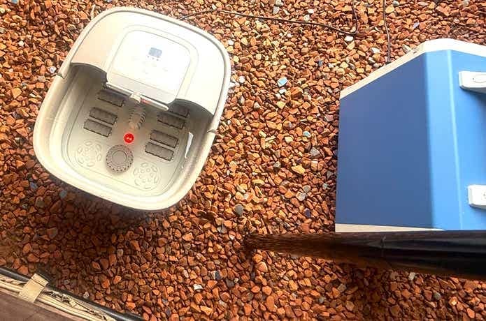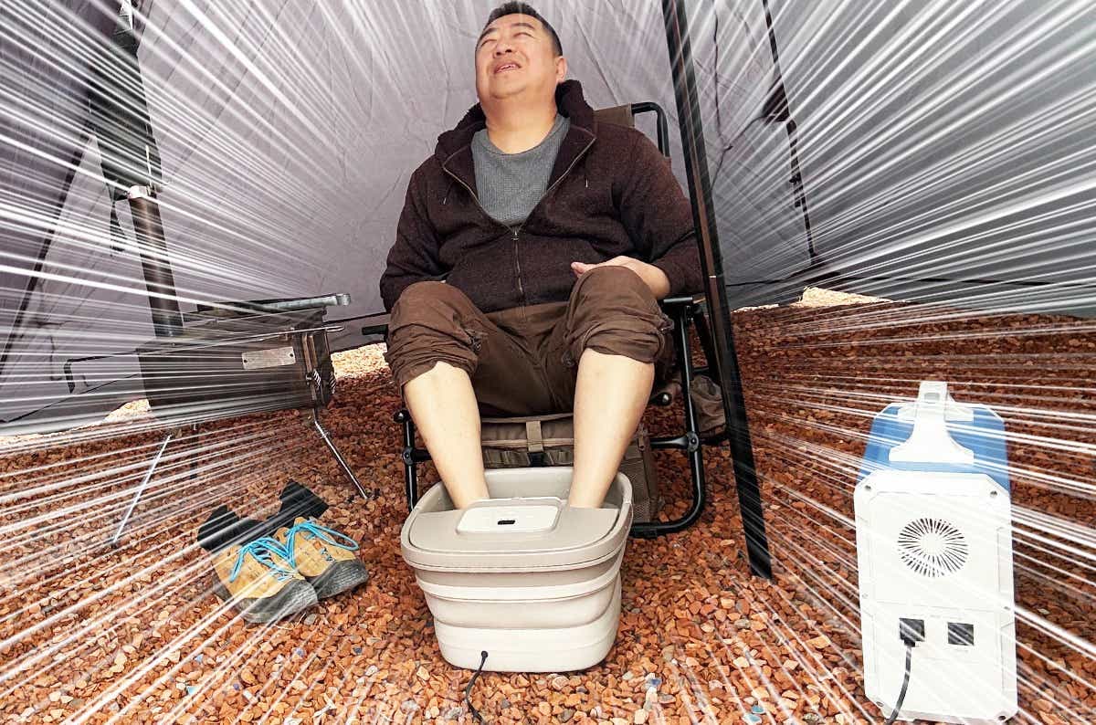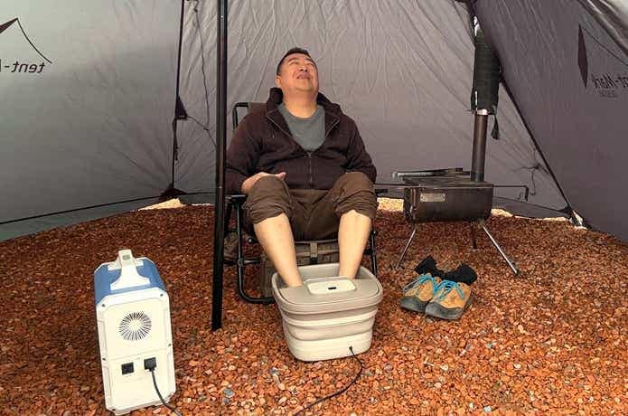 要は家庭用の電気式フットバスなんですが、似た類のアイテムも数多くある中、「キャンプで手軽に使う」なら最適解かも?!と思えるポイントが満載なんです。