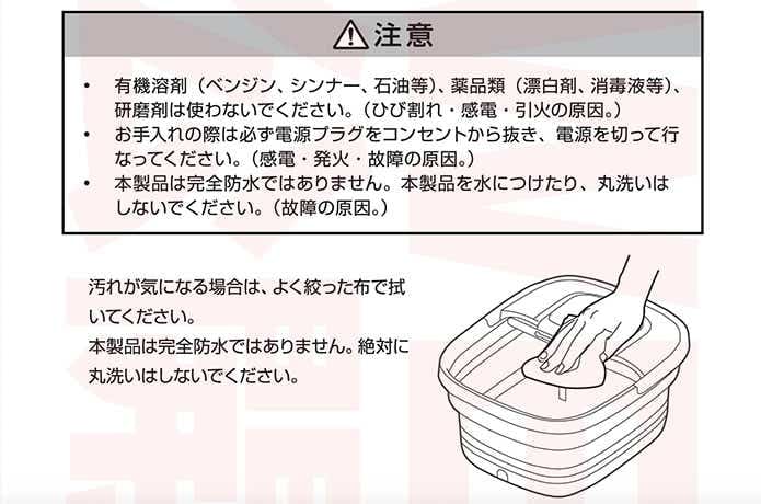 さらに、内側は抗菌加工されてはいるものの、実は「あし〜ゆ2」自体が丸洗い禁止なのです。