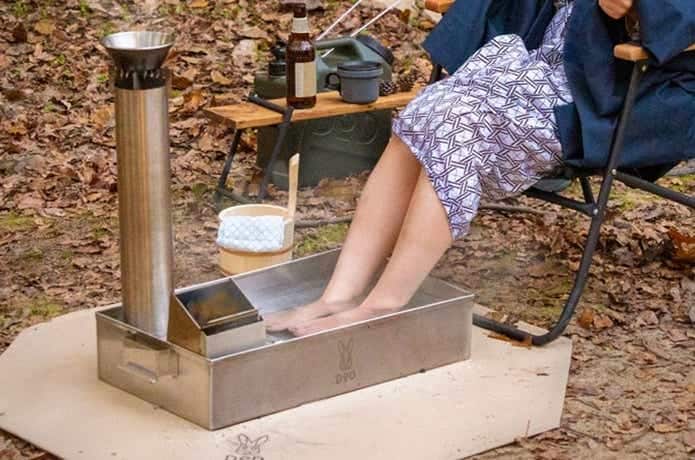 また以前、DODの「ロケットサブマリンフットバス」なる足湯専用ギアも存在しましたが、燃料に薪を使う設計で、手間やサイズ感も相まってかなり導入のハードルは高い印象でした。