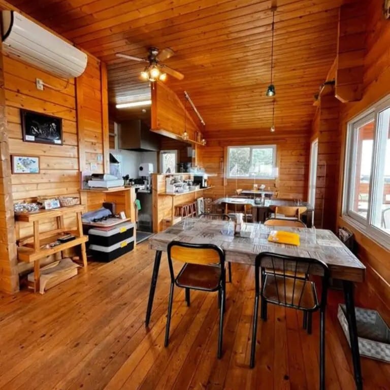春にはログハウスの周囲を大きな桜の木が優しく包み込み、海風と鳥の声に癒やされながら花を眺められる絶好のロケーション。近隣には王城切石山公園などの絶景スポットもあり、海と桜を楽しむルートの立ち寄り先として最適な一軒だ。