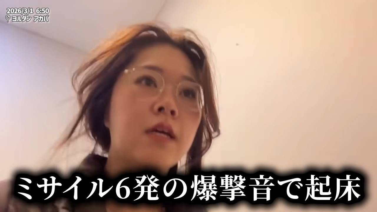 はぎたすは、ヨルダン在住の友人からの連絡で攻撃開始を知り、「30分前にアメリカのイランの攻撃が始まったみたいで、もう今日の夜、多分空域が封鎖されて中東から出れなくなる」と、緊迫した様子でカメラに語ります。