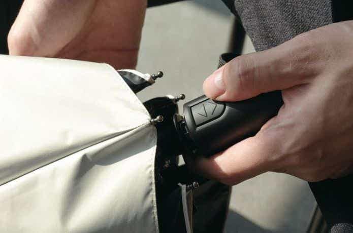 折りたたみ傘のわずらわしさといえば、使用後にたたんでケースに収納する作業。雨で濡れていると手が汚れるし、うまくたためなくてケースに入らないとイライラしてしまうこともあるでしょう。