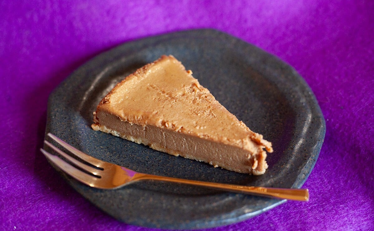 また、食感にも特徴あり。チーズ生地はねっとり、しっとり、なめらかで、ビスケット生地はサクサク。ビスケット生地がよいアクセントになっています。かなり簡易的なつくりだけれど、シンプルだからこそそれぞれのおいしさをしっかり味わえるのがうれしいですね。
