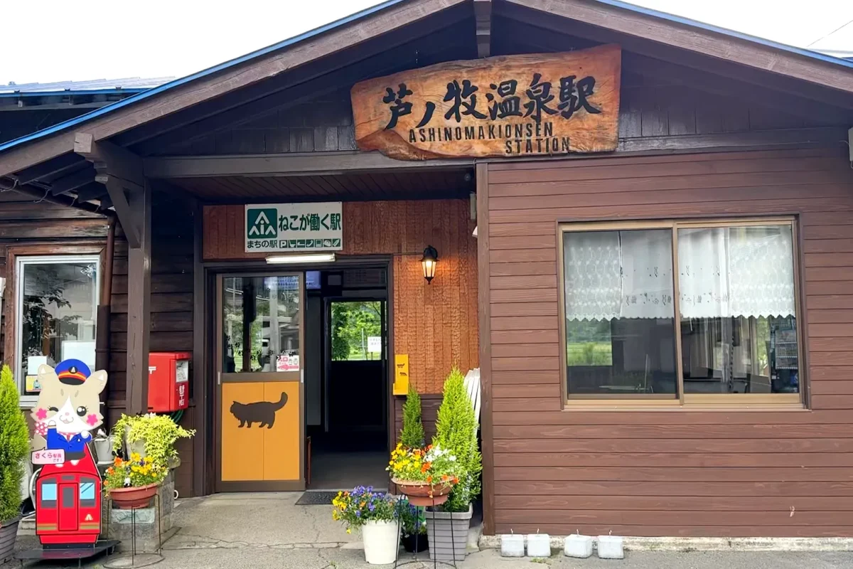 会津若松へ向かう前に、「猫駅長」が人気の会津鉄道の「芦ノ牧温泉駅」に寄ってみましたが、残念ながら、駅長の「さくら」は勤務時間終了で会うことが出来ませんでした。