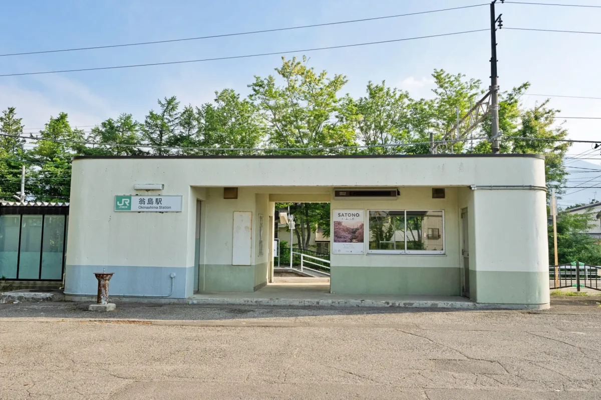 いなわしろカワセミ水族館や釣り堀もある「緑の村」[ツーリングマップル東北 P.18(関東甲信越 P.103) I-6]の駐車場に入ると、すぐ目の前に移築保存された「旧翁島駅」がありました。現在は食堂として利用されていますが、営業日は週末と休日で、残念ながら、中に入ることは出来ず。貴賓室も見られるそうですが、次は営業日に訪問したいです。