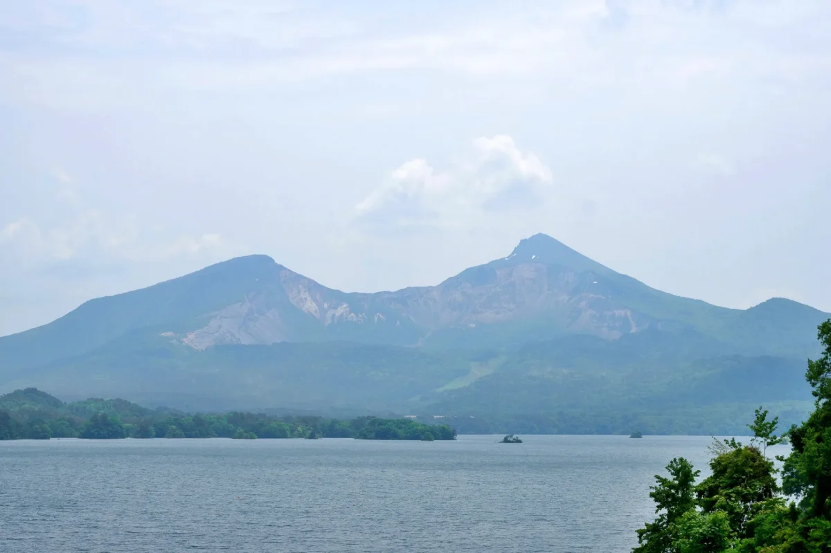 「桧原湖の西岸からみる磐梯山も必見ですよ」